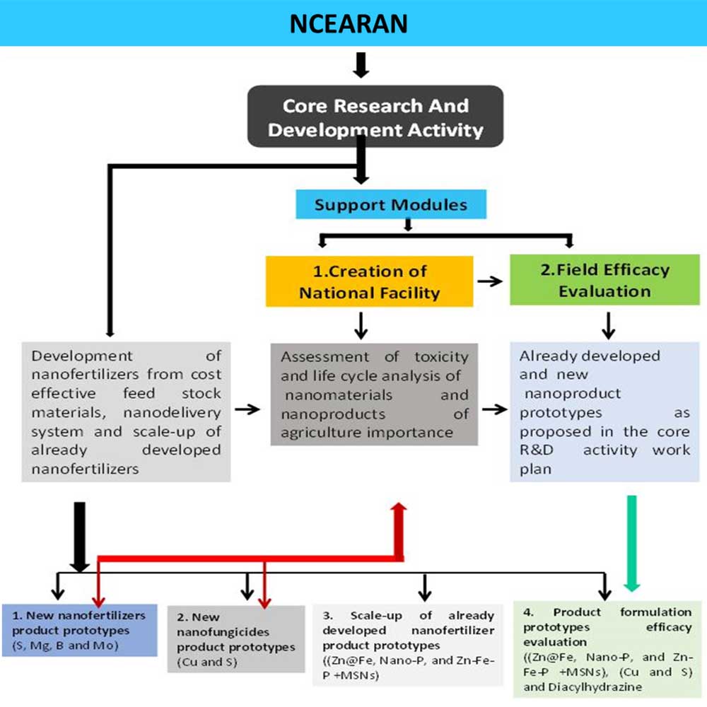 The National Centre of Excellence for Advanced Research in Agricultural Nanotechnology is the first of its kind research platform in India, which endeavours to carry out end-to-end research to innovate green nanoproducts including nano-fertilizer, nano-pesticide and nanocarrier products and technologies. Safe and efficacious nanoproducts will be developed by the Centre in order to meet the global food demand along with protecting environment and human health.