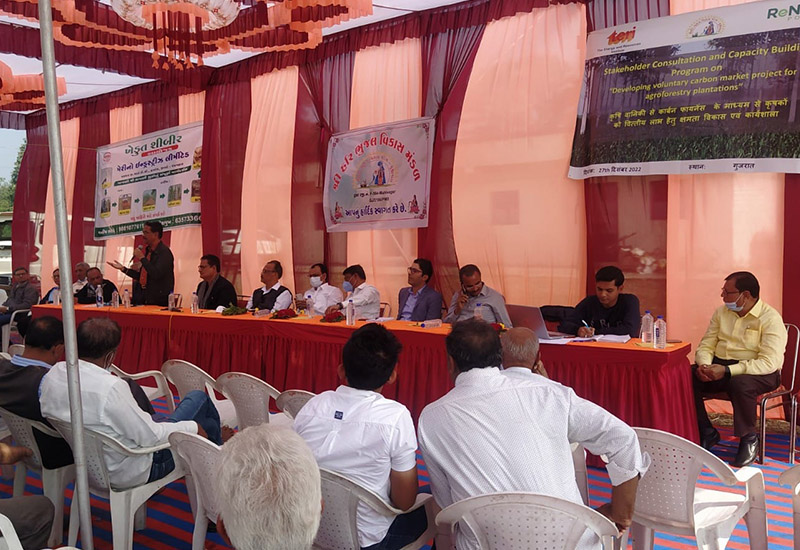 The project is an ARR-based agroforestry carbon finance initiative implemented across six districts of Gujarat to enhance tree cover, improve farm productivity, and support rural livelihoods. Given the state’s relatively low forest cover, the project promotes the integration of commercially viable tree species into existing agricultural and barren lands. Led by Shri Hari Bhujal Vikas Mandal (SHBVM), the initiative supports farmers through quality planting material and technical assistance, while enabling additional income through carbon credit generation. TERI is supporting the development and technical structuring of the carbon project, with ReNew acting as the project investor. By scaling up plantation activities between 2020 and 2028, the project aims to deliver climate mitigation benefits through carbon sequestration.