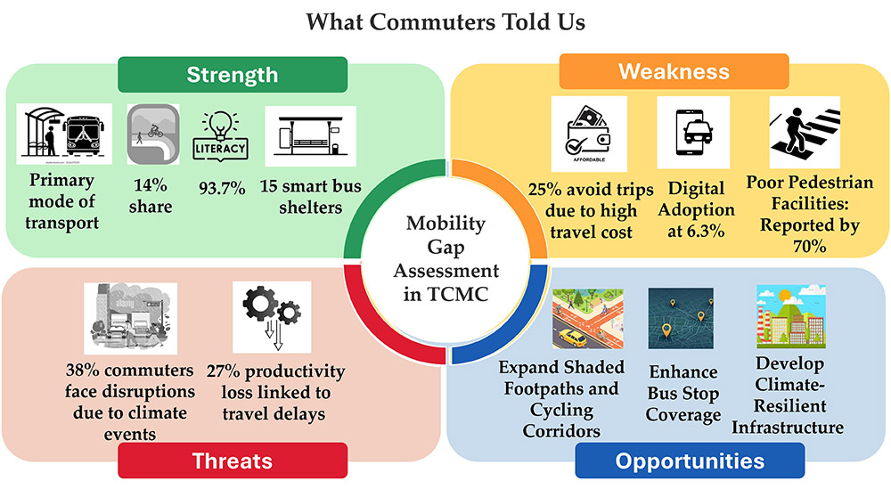 Data from the commuter perception survey and secondary analysis reveal a nuanced picture of mobility in Thoothukudi.