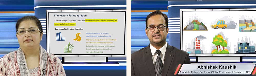 Webinar Module I on Impacts of Climate Change on Cities (10th September 2020) focused on the conceptual understanding of climate change, its causes, impacts, and linkages with cities. The module also discussed the impact of climate change on various urban sectors, such as water resources, transportation, and energy. Mr Saurabh Bhardwaj, Fellow, Centre for Climate Modelling, TERI, briefed the participants on observed and expected changes in the global and regional climate. Dr Kavya Michael, Associate Fellow, Centre for Global Environment Research, TERI, articulated the potential impacts of climate change on cities, especially in the informal sector. The Q&A session of the module highlighted linkages between the measures taken towards addressing COVID-19and climate action. It was noted that the pandemic situation has sensitized governments and authorities more towards acknowledging and preparing for uncertainties, including climate change impacts, that may amplify in the future.