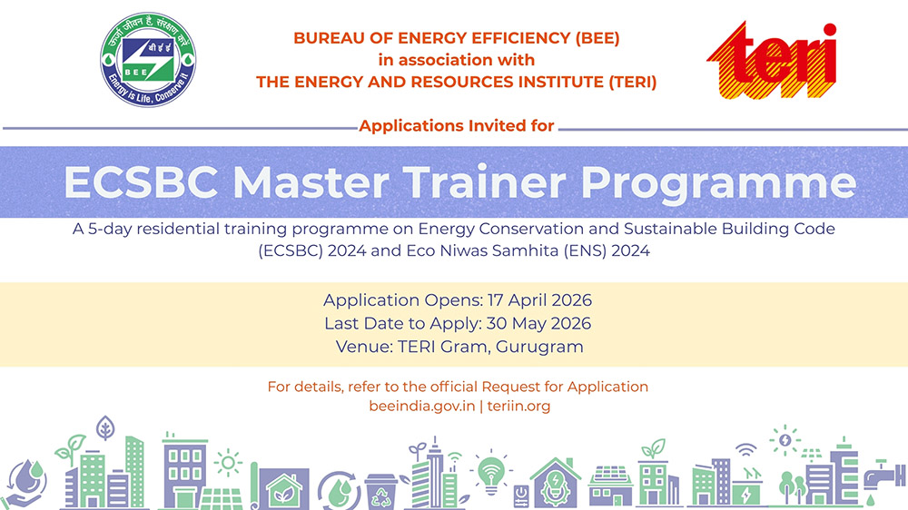 The Bureau of Energy Efficiency (BEE), in association with The Energy and Resources Institute (TERI), invites applications for the ECSBC Master Trainer Programme.