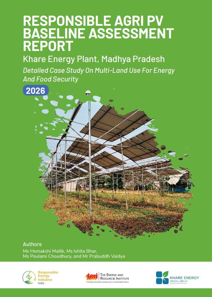 This report, prepared by TERI under the Responsible Energy Initiative (REI) India, assesses a farmer-led agrivoltaics (Agri‑PV) pilot at the Khare Energy Plant in Tikamgarh district, Madhya Pradesh. The study evaluates the project’s energy performance, agricultural outcomes, water use, financial viability, and socio-economic impacts, with the aim of understanding how Agri‑PV can support people‑centric and climate‑resilient renewable energy development in India.