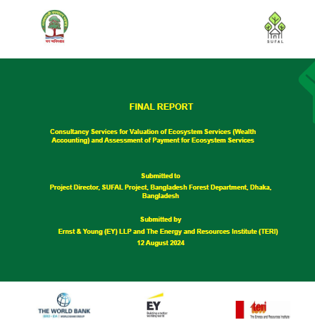 TERI, in collaboration with EY, supported the Bangladesh Forest Department under the SUFAL project to develop a framework for valuing ecosystem services in key forest areas. The study highlights the annual economic benefits of these forests at around 720 million USD and promotes sustainable forest management through Payment for Ecosystem Services. It emphasizes the importance of ecosystem valuation in shaping policies and improving livelihoods for forest-dependent communities.